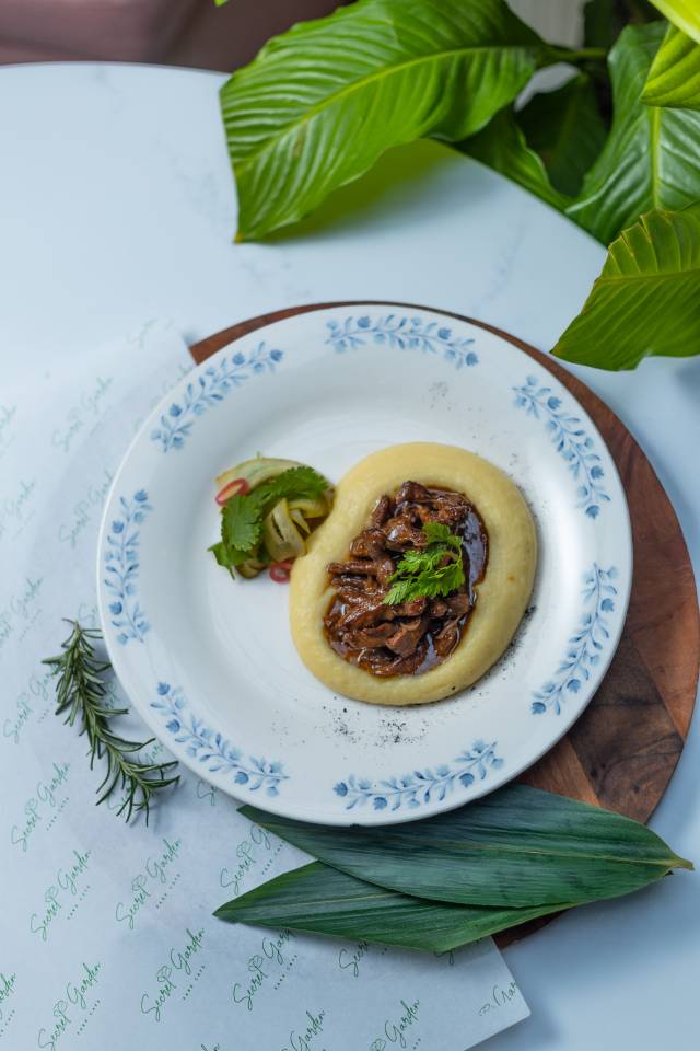 Mal əti stroqanofu / kartof püresi / turşu kornişon