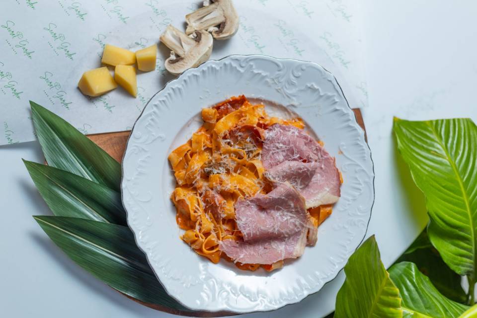 Fettuçini / vetçina / göbələk